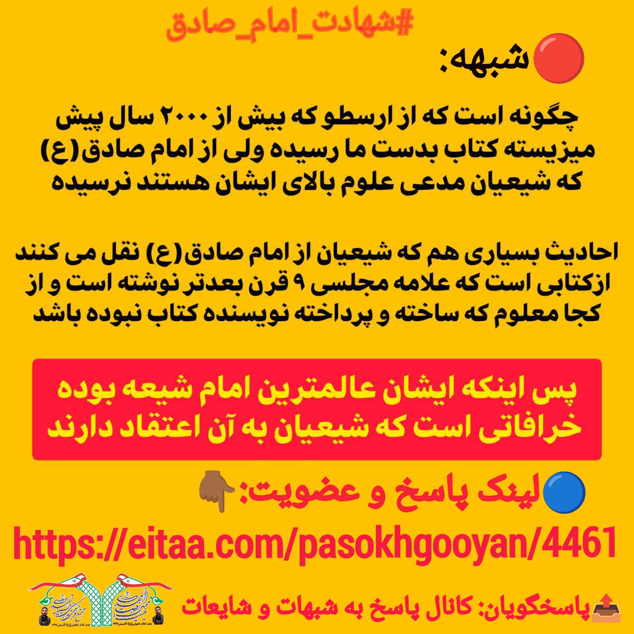 برچسبها: امام صادق , مؤسس مذهب شیعه , لقب رئیس مذهب