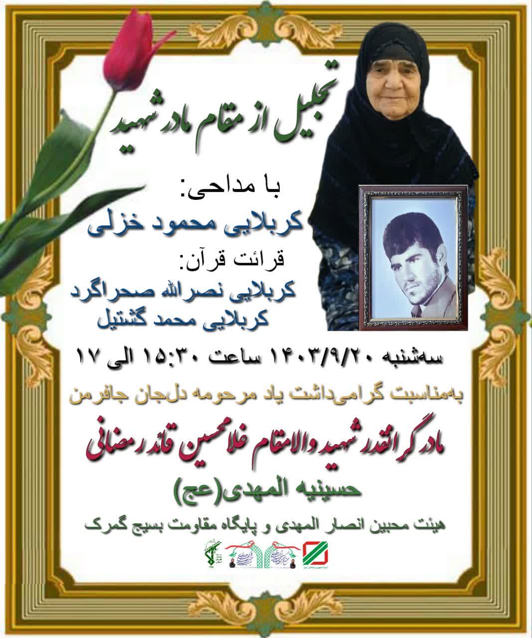برچسبها: رویای صادقه , مقام مادر شهید , غلامحسین قائد رمضانی , دل جان جافرمن
