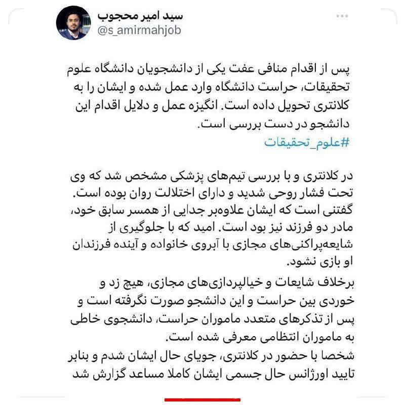 🔰 رفتار منافی عفت عمومی از سوی یک دانشجو در دانشگاه آزاد علوم تحقیقات تهران و حواشی آن