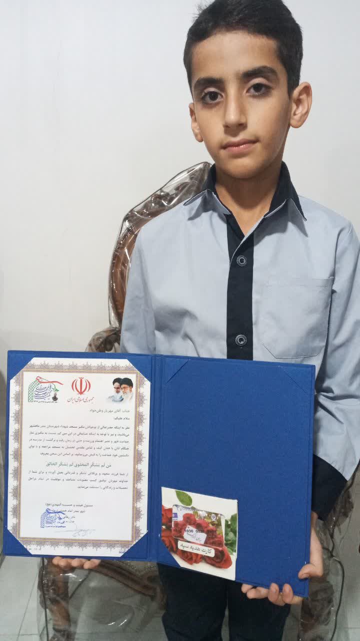 برچسبها: مهزیار وطن خواه , نوجوان مکبر ماهشهری , دریافت لوح تقدیر , مکبر مسجد شهداء
