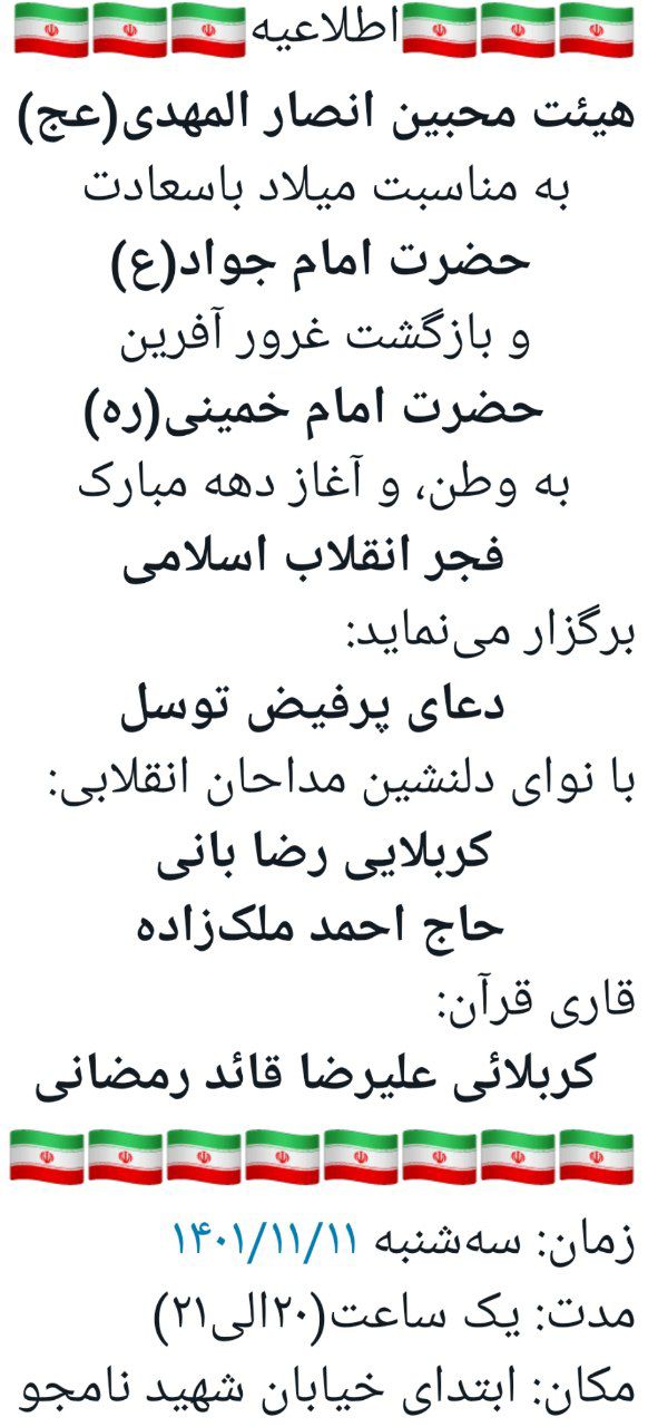 💠 *اعلام حضور، و دعوت هیئت محبین انصار المهدی(عج) حسینیه المهدی شهر بندر امام خمینی(ره) از مردم شریف ایران برای شرکت در انتخابات*