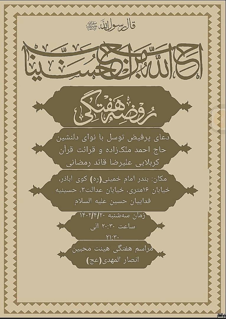 برچسبها: هیئت محبین , انصار المهدی , بندر امام خمینی , حسینیه المهدی