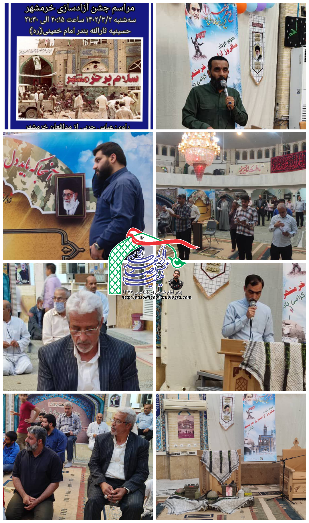 هیئت محبین انصار المهدی(عج) حسینیه المهدی بندر امام خمینی(ره) در تاریخ ١۴٠٢/٣/٢ به مناسبت سالروز عملیات غرورآفرین بیت المقدس و آزادسازی خرمشهر مراسم خاطرهگویی به روایت آقای عباس حربی، یکی از رزمندگان هشت سال دفاع مقدس و مسئول موزه دفاع مقدس شهرستان خرمشهر، در حسینیه ثارالله بندر امام خمینی(ره) برگزار نمود.