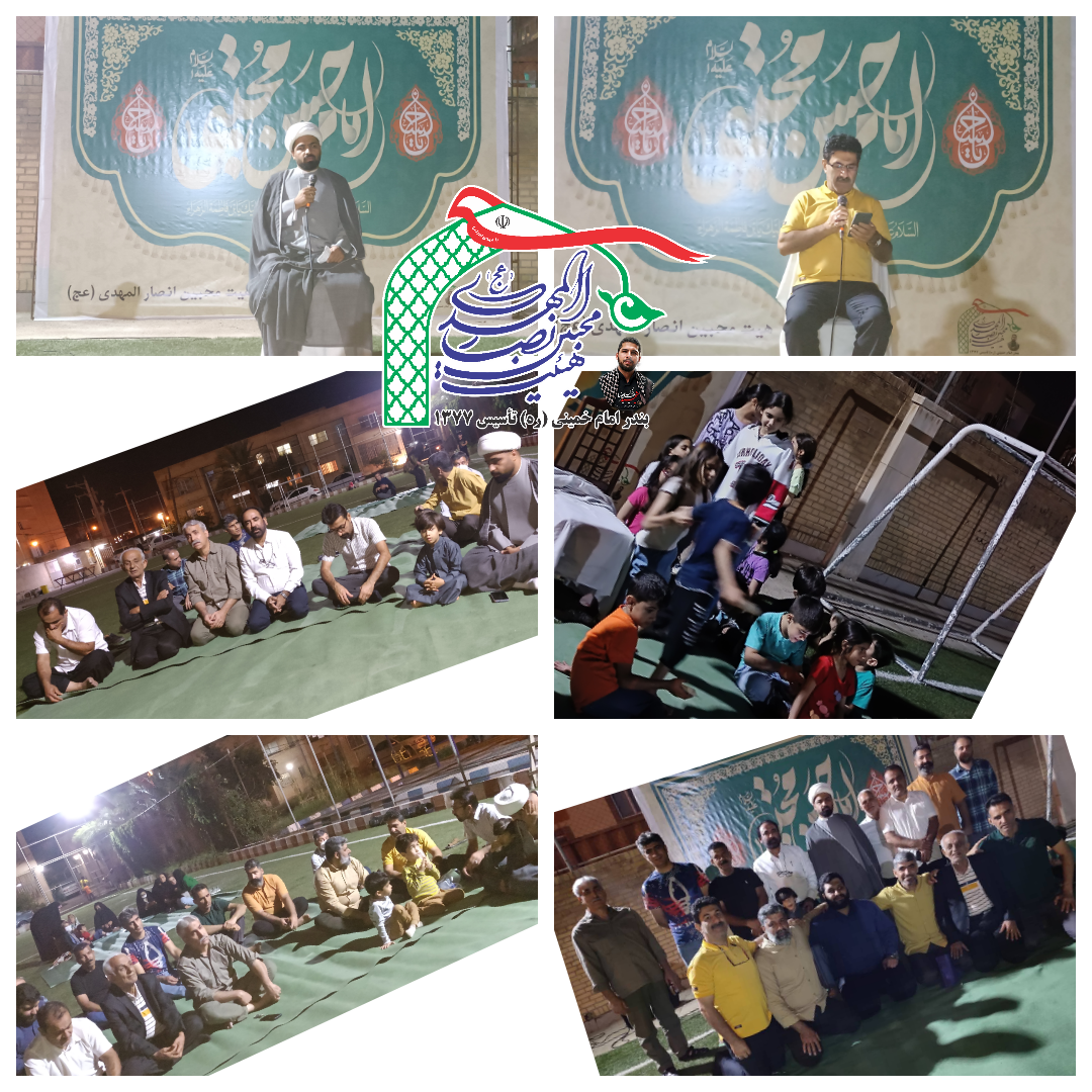 هیئت محبین انصار المهدی(عج) مراسم جشن امشب را در زمین چمن محوطه منازل آپارتمانی گمرک برگزار کرد.