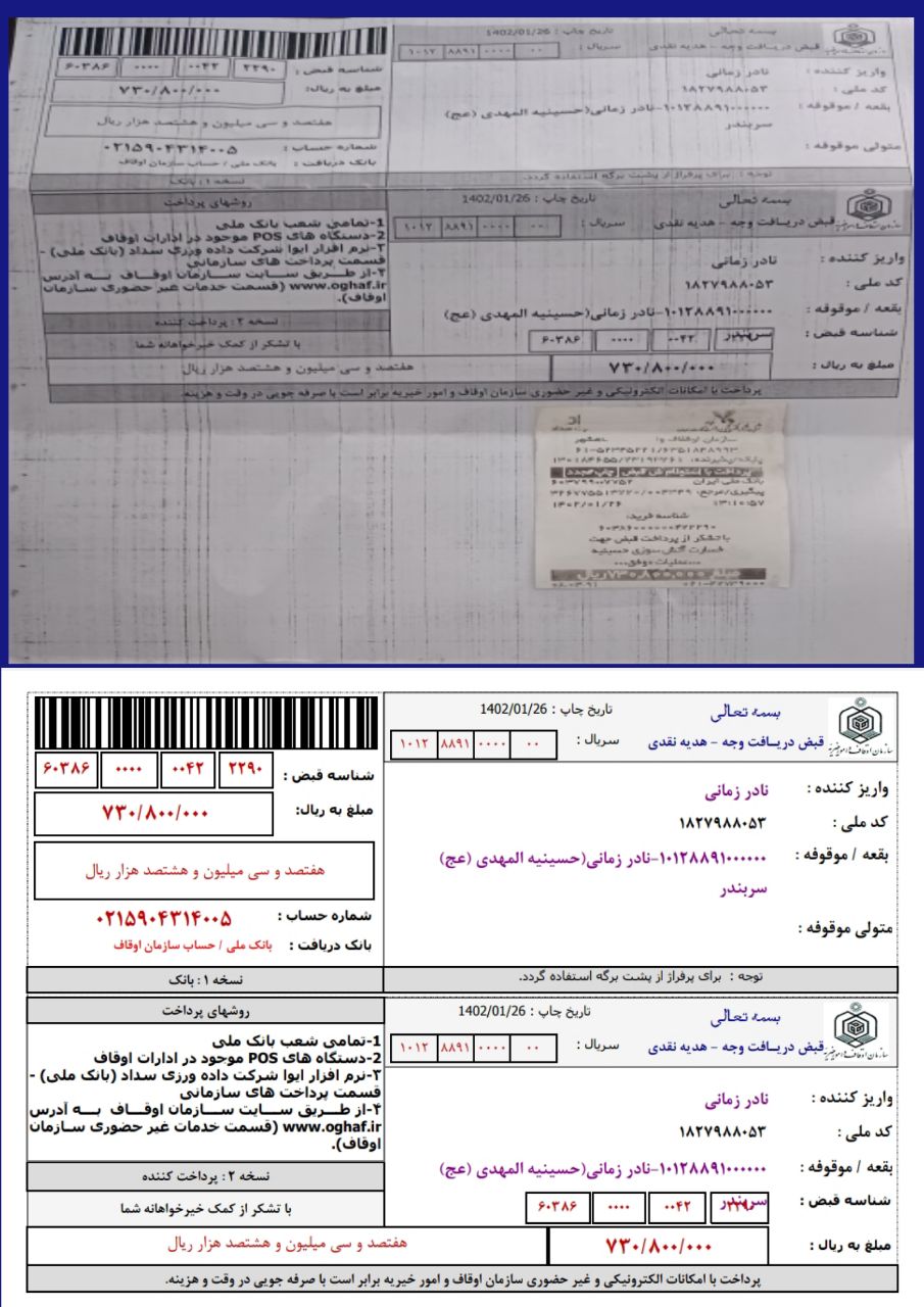 💠 *واریز مرحله دوم کمکهای مردمی به حساب اوقاف + تصویر سند و نام نیکوکاران مرحله دوم*